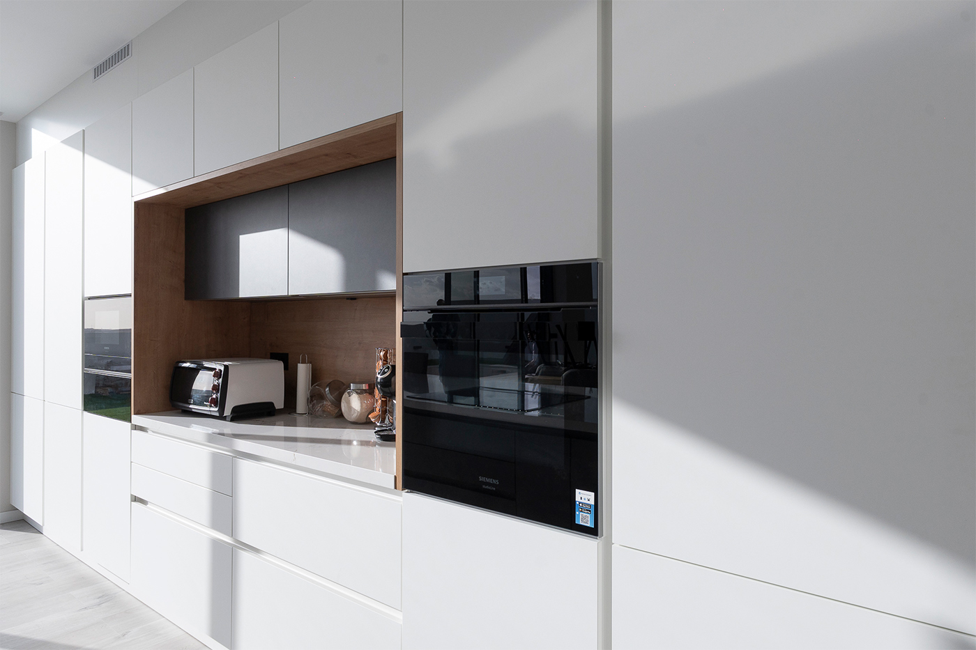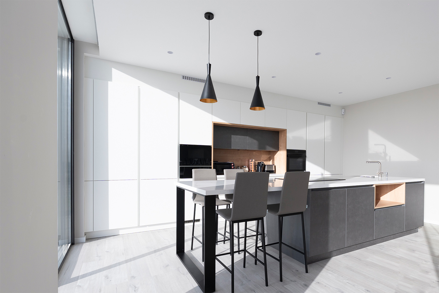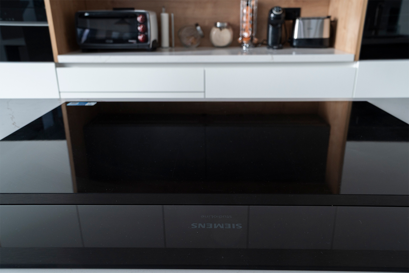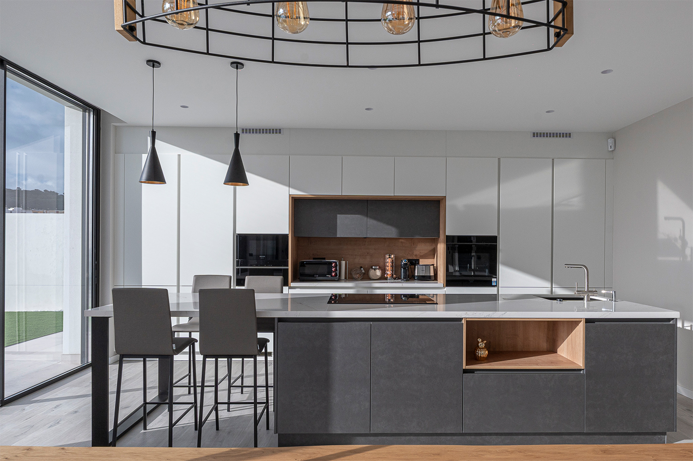 El espacio se completa con electrodomésticos de Siemens Studio Line y soluciones de fregado de Franke, que aportan calidad, tecnología y eficiencia al conjunto, garantizando un rendimiento excelente en el día a día.