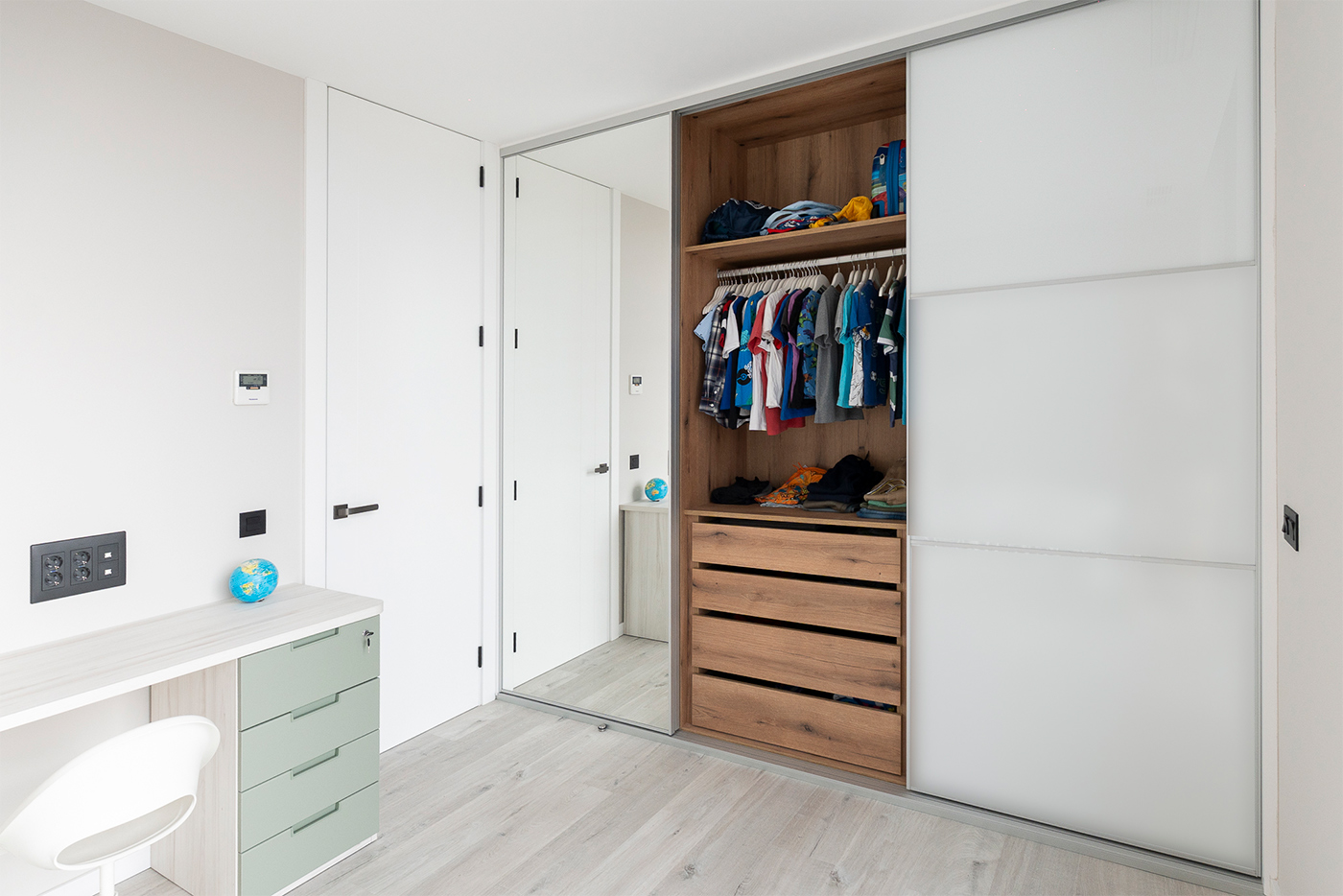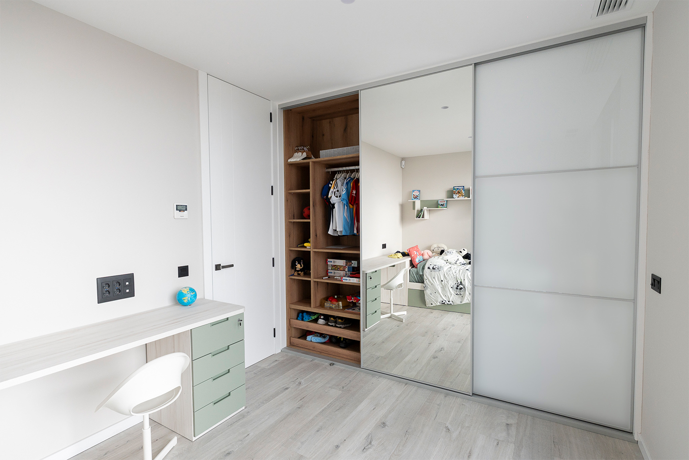 Los tonos neutros, combinados con cálidos detalles en madera, generan un equilibrio visual que aporta serenidad, calidez y un estilo actual. Esta combinación de materiales crea una atmósfera luminosa y acogedora, donde cada elemento ha sido pensado para aportar armonía y confort.
