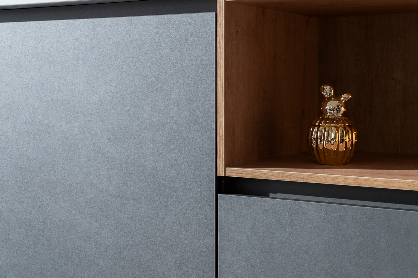 La encimera de Silestone aporta elegancia, resistencia y una estética sofisticada que eleva el conjunto del proyecto. Su acabado limpio y su gran durabilidad la convierten en una opción ideal para una cocina moderna y funcional.